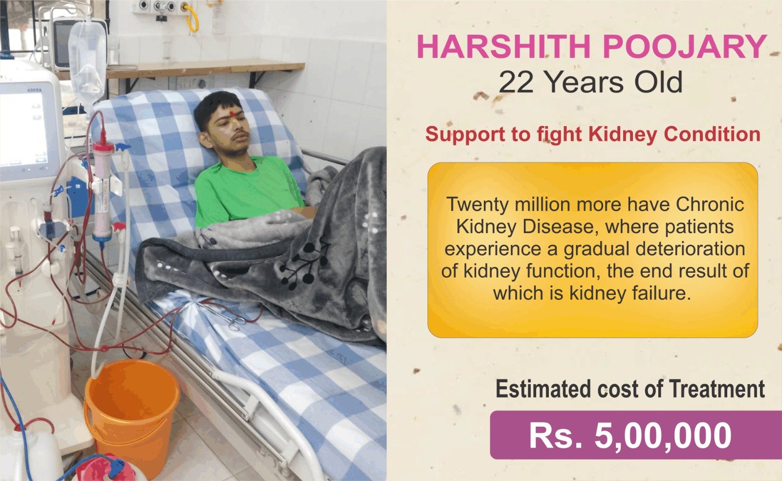 25 Febdg0 CommentsUrgent Medical Fund Appeal for Harshith Poojary 22 yr old Fighting Serious Kidney ConditionsDear Donors , We urgently seek your support for Harshith Poojary, a 22-year-old battling Chronic Read more